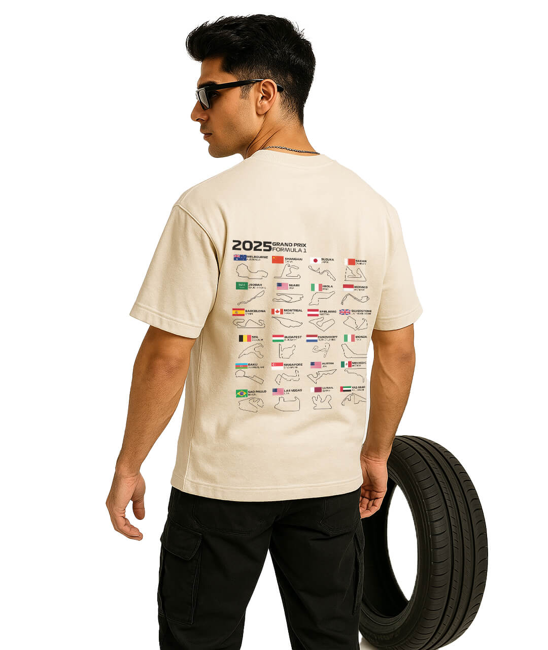Rev up your style with the F1 2025 Grand Prix Circuit Tee, designed for true motorsport enthusiasts. This oversized, streetwear-inspired t-shirt features all the 2025 Formula 1 race circuits printed on the back, complete with track layouts and national flags. Made from premium cotton, it offers a relaxed fit for all-day comfort. Whether you're hitting the streets or watching the race, this tee ensures you stay ahead in both fashion and fandom.