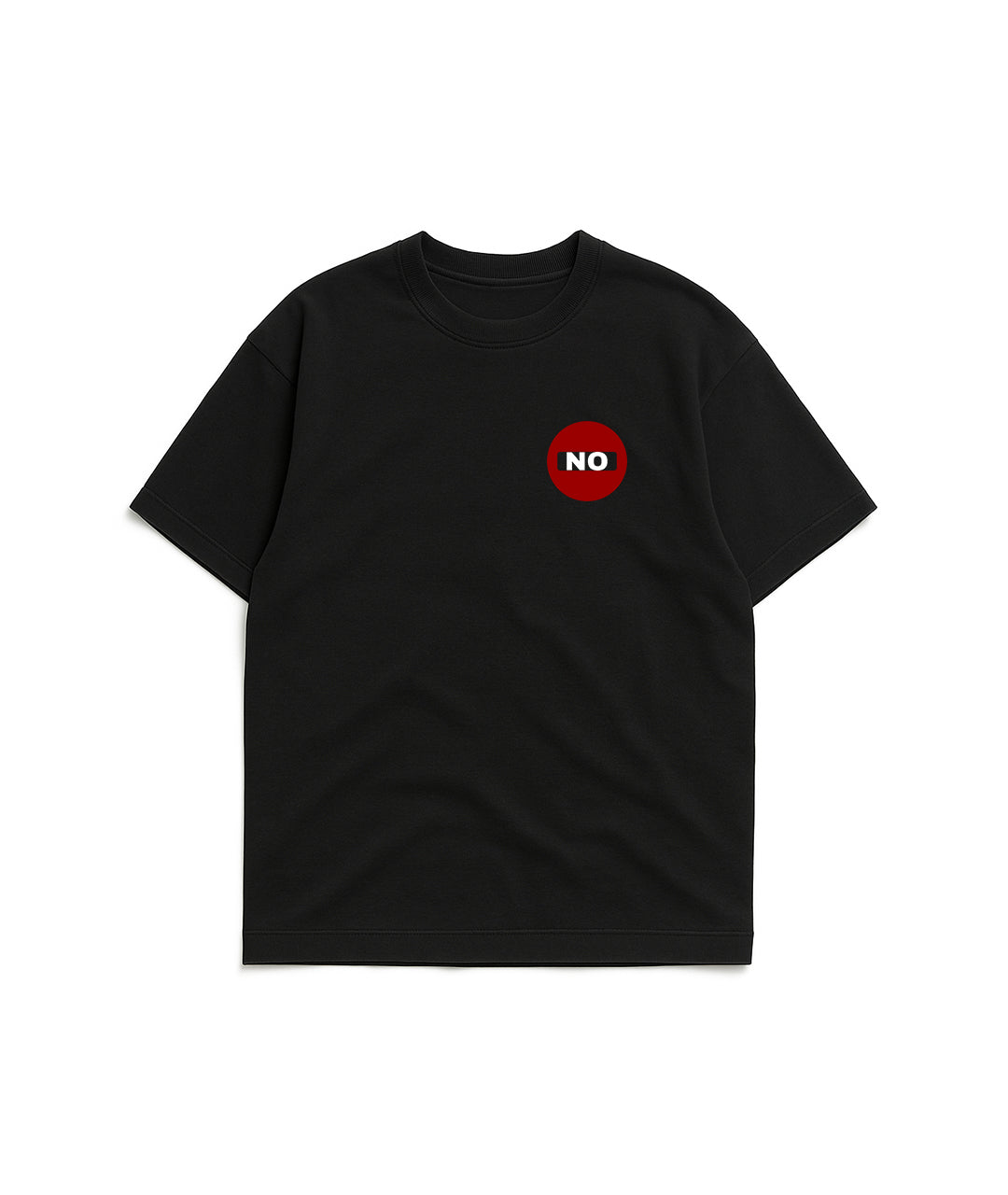 Front: “NO” badge print