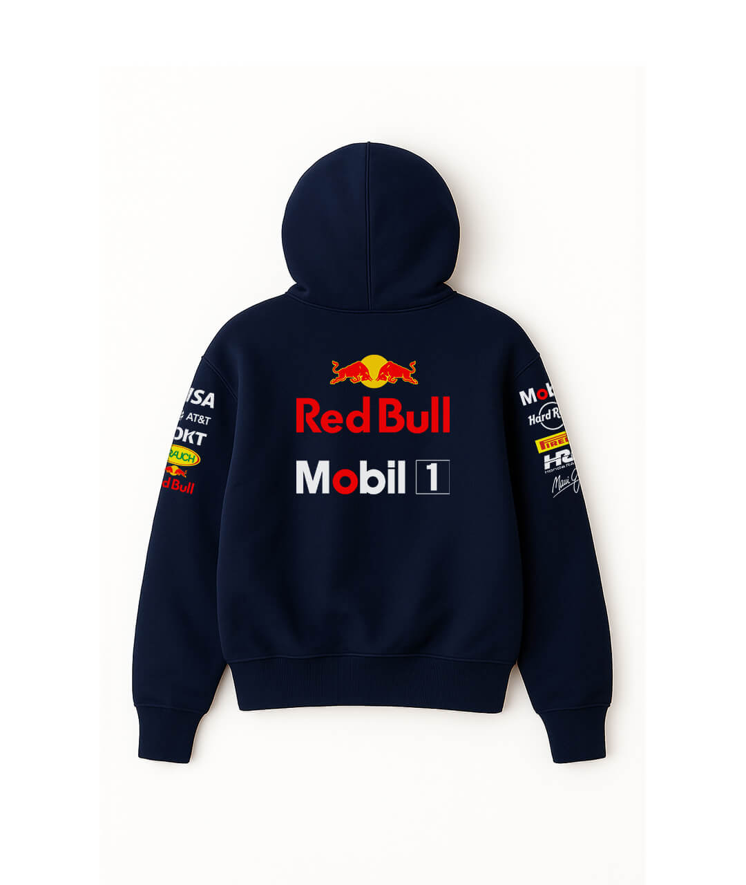 Step into the Red Bull garage with this oversized pitwall hoodie, designed to channel pure Formula 1 energy. Featuring the bold navy base with a striking red inner hood lining, this hoodie captures the adrenaline of the track while giving you unmatched streetwear edge.